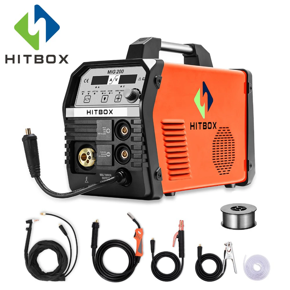 Сварочный аппарат HITBOX Mig из нержавеющей стали с синхронным контролем, сварочный аппарат 220 В MIG ARC TIG MIG200 для алюминиевой сварки DC Gas без газа