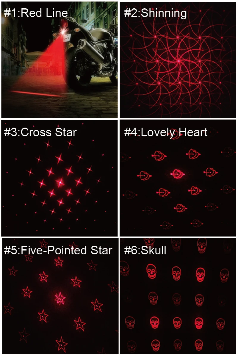 Вес: около 30 г/компл.Напряжение: 12 ВМощность лазера: 10 мВтДлина волны лазера: 650 нм (красный)Цвет корпуса: черныйРабочая температура: -20-70CСтепень безопасности: класс IIIBСтепень водонепроницаемости: IP X 4Самый большой регулируемый угол: +-90Преимущество Предупреждение, пусть drving будет безопаснееИспользование: противотуманный светильник, лазерная противотуманная фара, Предупреждение ющий светильник