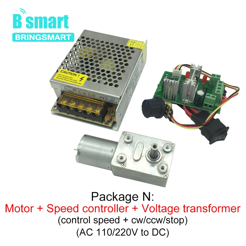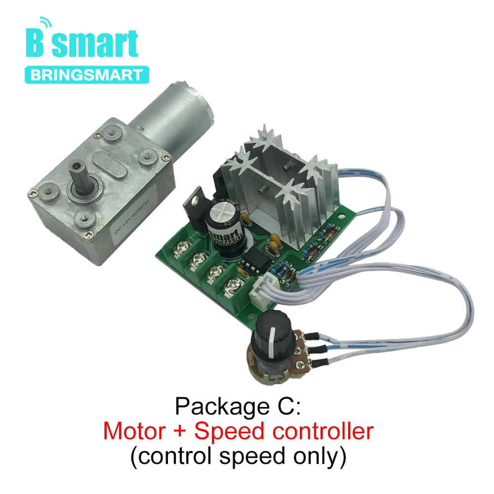 Редуктор червячной передачи двигателя 12 В с металлическим кронштейном, контроллер скорости и обратный беспроводной пульт дистанционного управления двигателем, источник питания постоянного тока