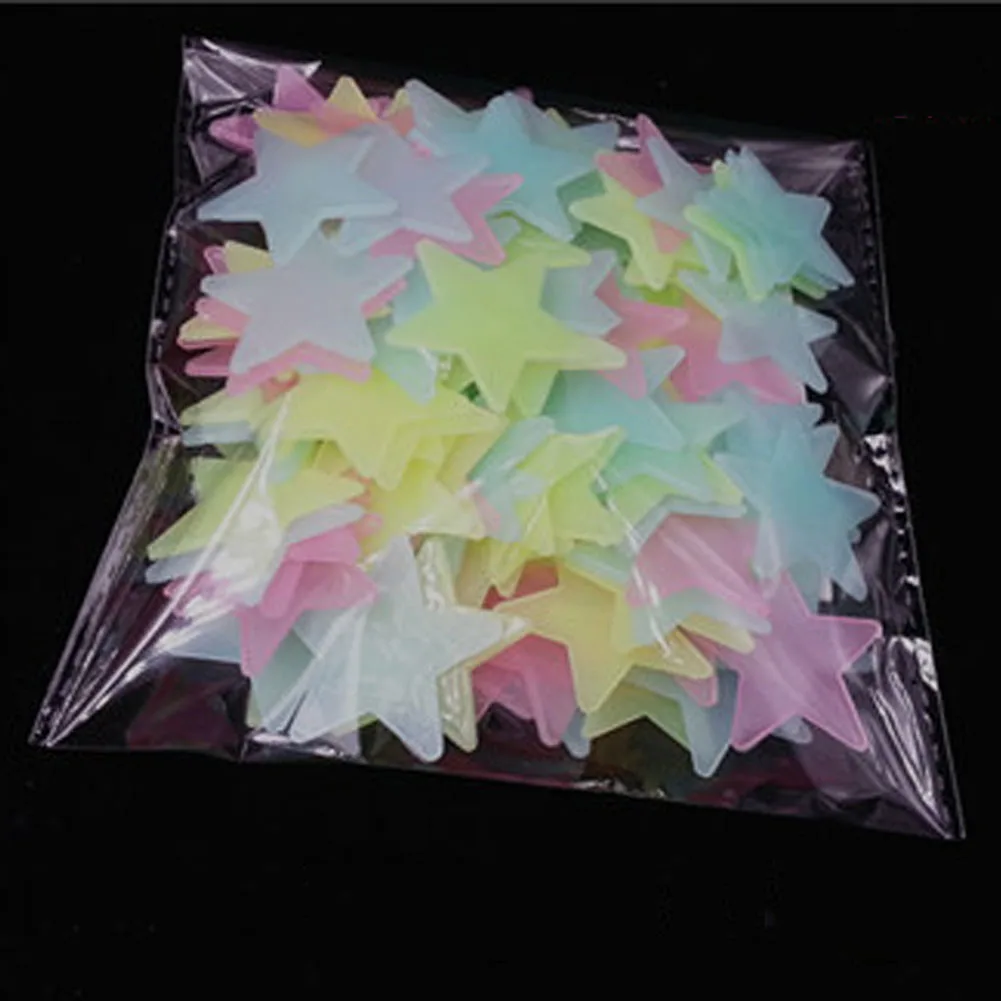Пластиковые флуоресцентные украшения, светящиеся в темноте 3d-звезды, 100 шт.