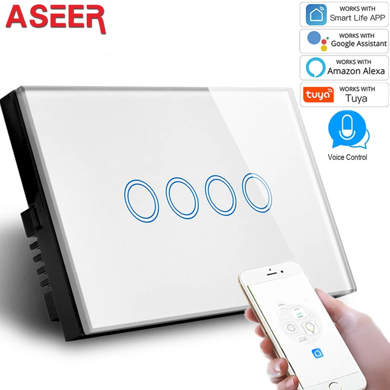 Умный выключатель ASEER US, 4 клавиши, Wi-Fi, управление через приложение, выключатель лампы из хрустального стекла, Wi-Fi 2,4 ГГц, совместимый с Alexa Google Assistant