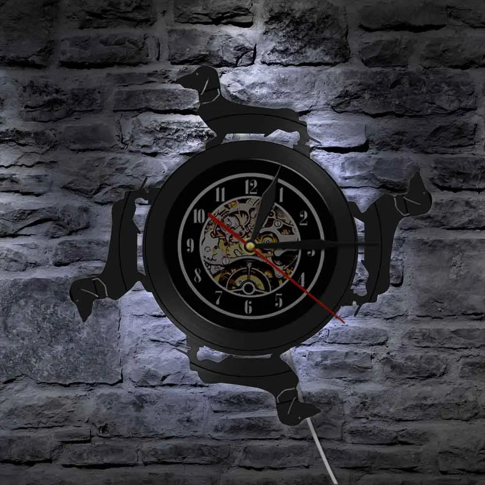 WireHaired такса виниловых пластинок настенные часы не тикают такса Винер собака настенные часы, носки с милыми животными Собака Щенок Lover Подарок