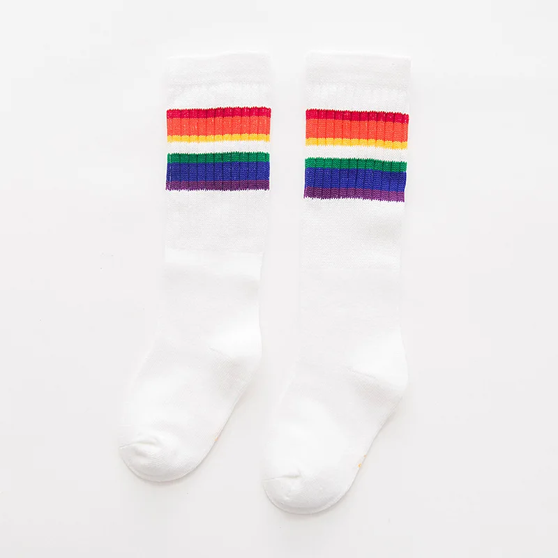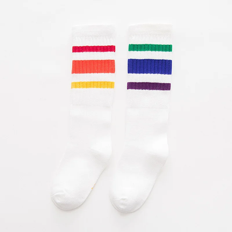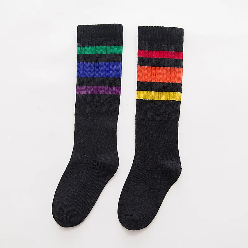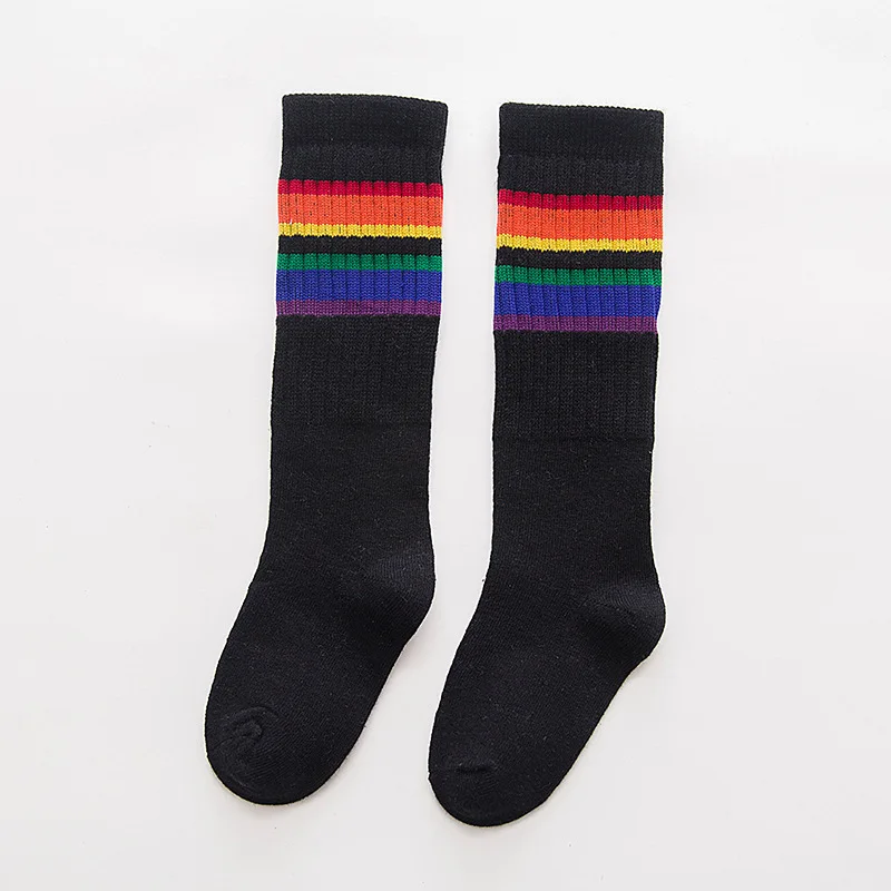 3 пары детских хлопковых утепленных колготок на мальчиков футбольные носки в полоску цвета радуги гетры хлопковые школьные спортивные белые длинные носки до колена для детей, одежда для маленьких мальчиков