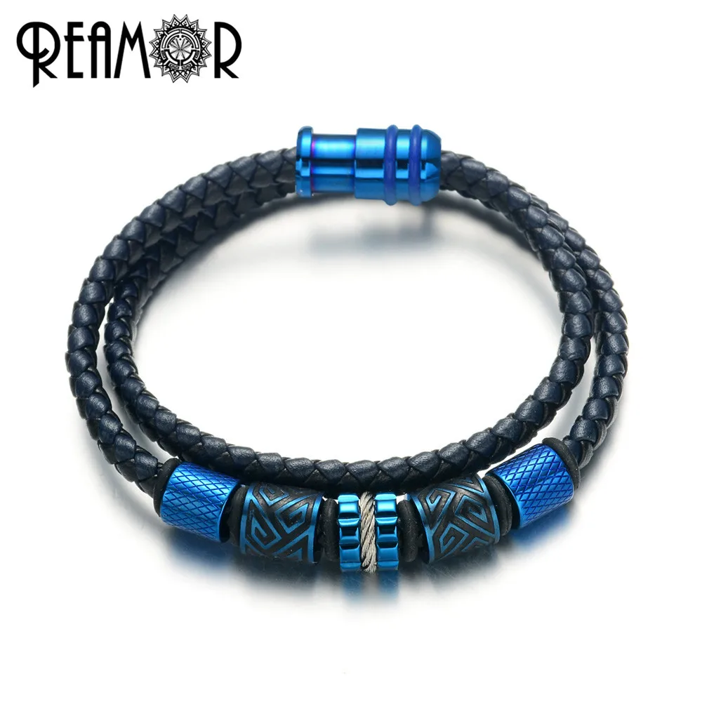 REAMOR черные синие металлические бусины из нержавеющей стали 6 мм ...