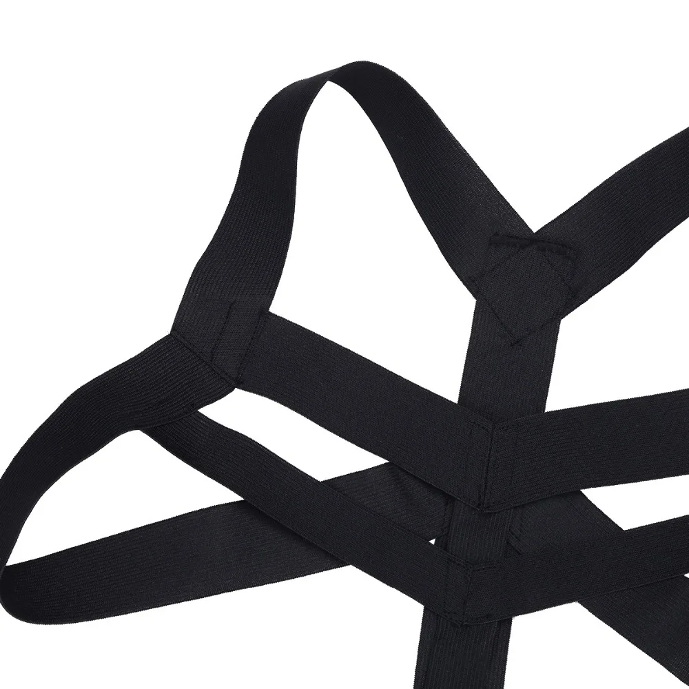 Iiniim Мужское нижнее белье, нейлоновые бондажные костюмы для БДСМ, смачивающий внешний вид, с лямкой на шее, для ночного клуба, с вырезами, мужская одежда