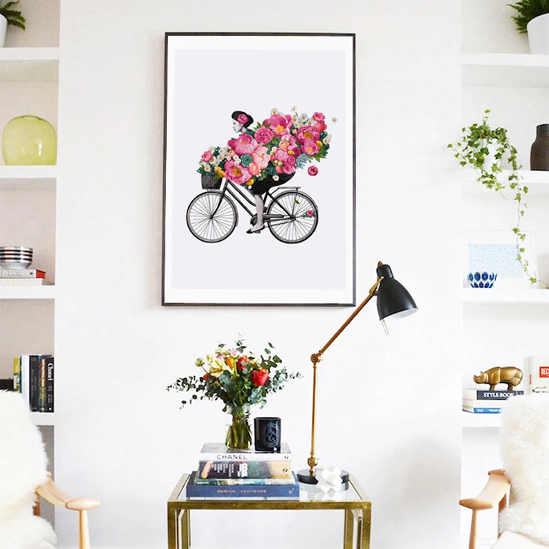 Скандинавский стиль холст Художественная печать акварель картины, постеры и принты Цветок Девушка Настенные картинки для украшения дома, Декор стены