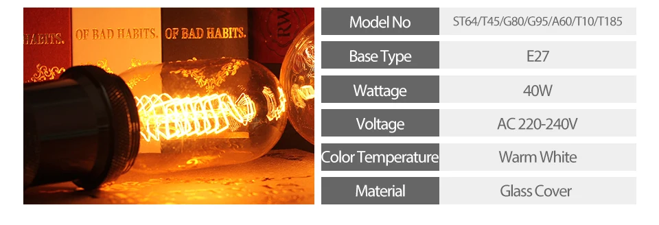 Страна: IE Color: ST64 filament Base Type: 220V 40W Доставка: Seller's Shipping Method 08.01.2021