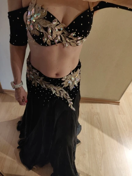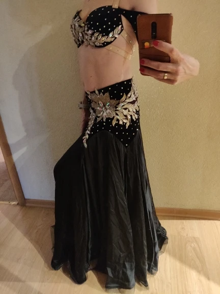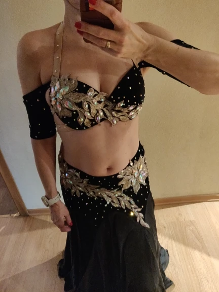 Костюм прекрасный, сверкает, приятный к телу. Шортики беж пришиты к поясу. Юбка длинная, как и требуют для выступления (мой рост 163). Размер L подошел - у меня ог 90 от75, думаю, можно было М брать, зато мне не давит, очень не хотелось чтобы вьедалась резинка. В общем, я довольна, рекомендую.