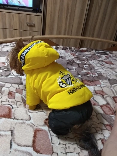 Не знаю. У меня чихуахуа 3,5 кг взяла l маловато. Надо было xl. А так комбез отличный. Но ещё не стирали. У меня три разных. Этот пока новый одеваем на выход
