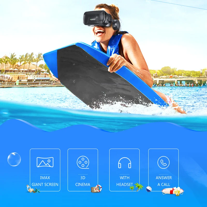 Товар пришёл через 3 недели до Краснодарского края, упаковка не нарушена, сделано все качественно и надёжно, внутри были очки и ткань для очистки линз, + была коробка, очки пришли с дефектом, не работал левый динамик, администрация вернула 70% от суммы покупки, телефон желательно с экраном больше 4,7 дюймов иначе видны рамки и идёт не полное погружение, для наушников есть специальный провод