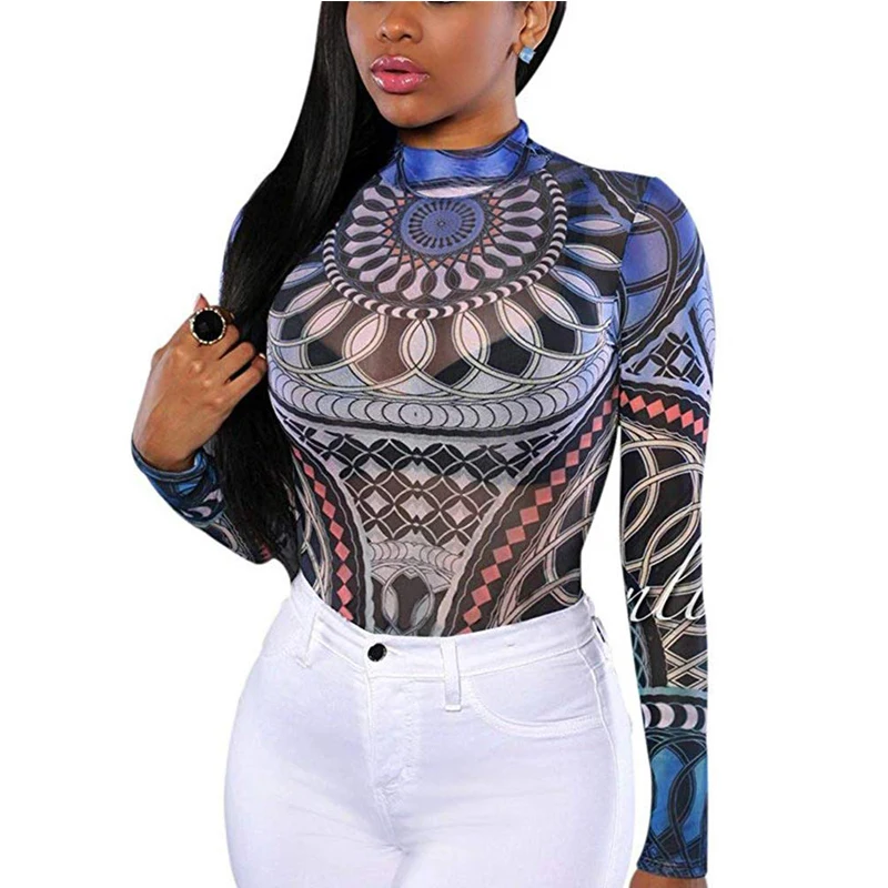Винтаж Детский комбинезон с принтом в виде тотема для Для женщин с длинным рукавом стрейч Tutleneck Ползунки-комбинезон; Для женщин s купальник Топы