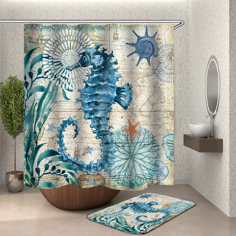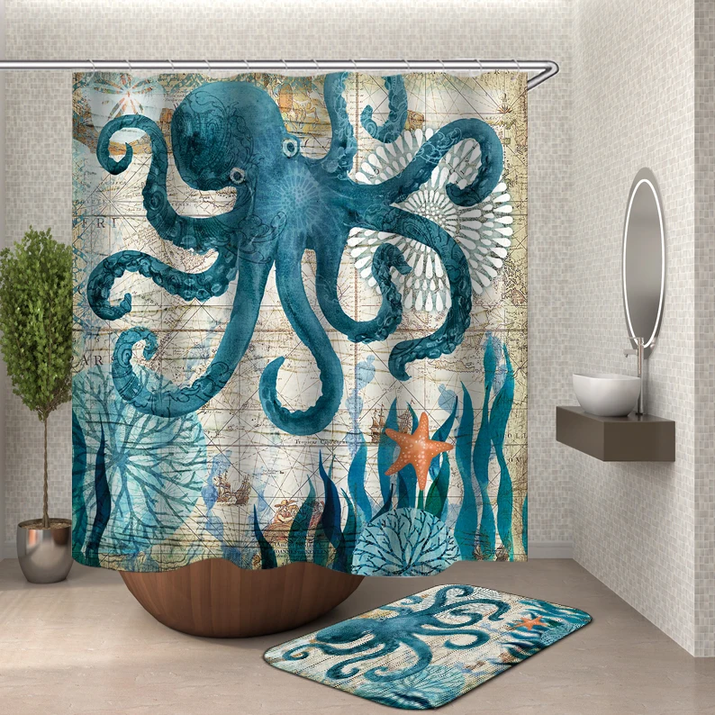 Водонепроницаемая занавеска для душа Miracille, шторка в виде морской черепахи Осьминог для дома, занавеска s с крючками, шторка из полиэстерной ткани или коврик для ванной комнаты
