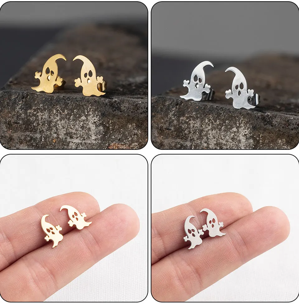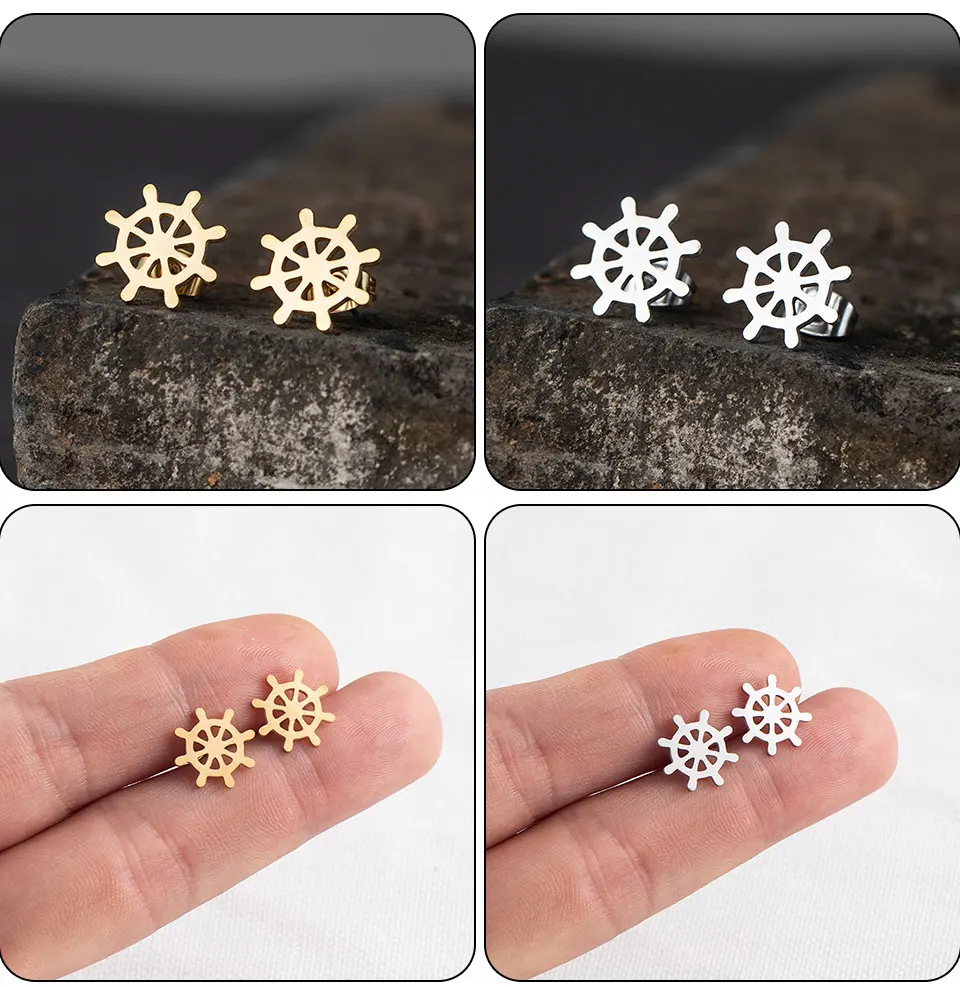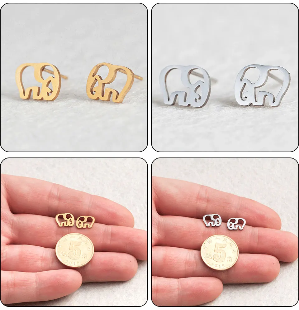 Женские золотистые серьги-гвоздики из нержавеющей стали, гвоздики для девочек, серьги с животными, сердцем, листьями, котом, минималистичные украшения