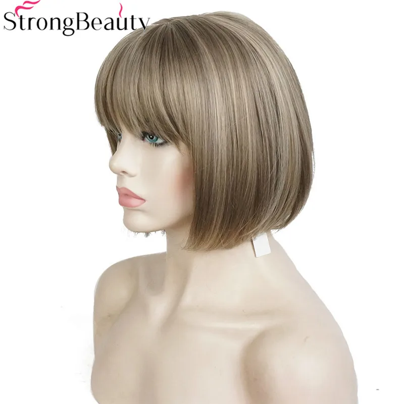 Сильная Красота Женщины боб парики синтетические короткие прямые косплей парик для женщин 10 дюймов