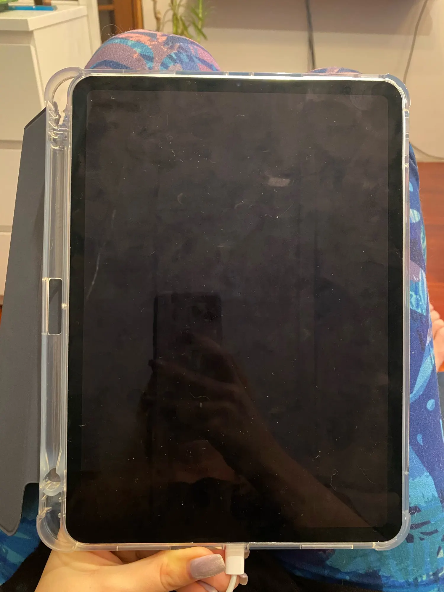 Прибыл в течение 2 1/2 недель в Соединенные Штаты, и это точно так же, как на фото. Прозрачная задняя часть матовая и слегка непрозрачная (у меня есть серый iPad Air 4). Чехол также позволяет моему Apple Pencil магнитно подключаться и заряжать сбоку. Фиолетовый цвет больше лаванды и серого цвета.