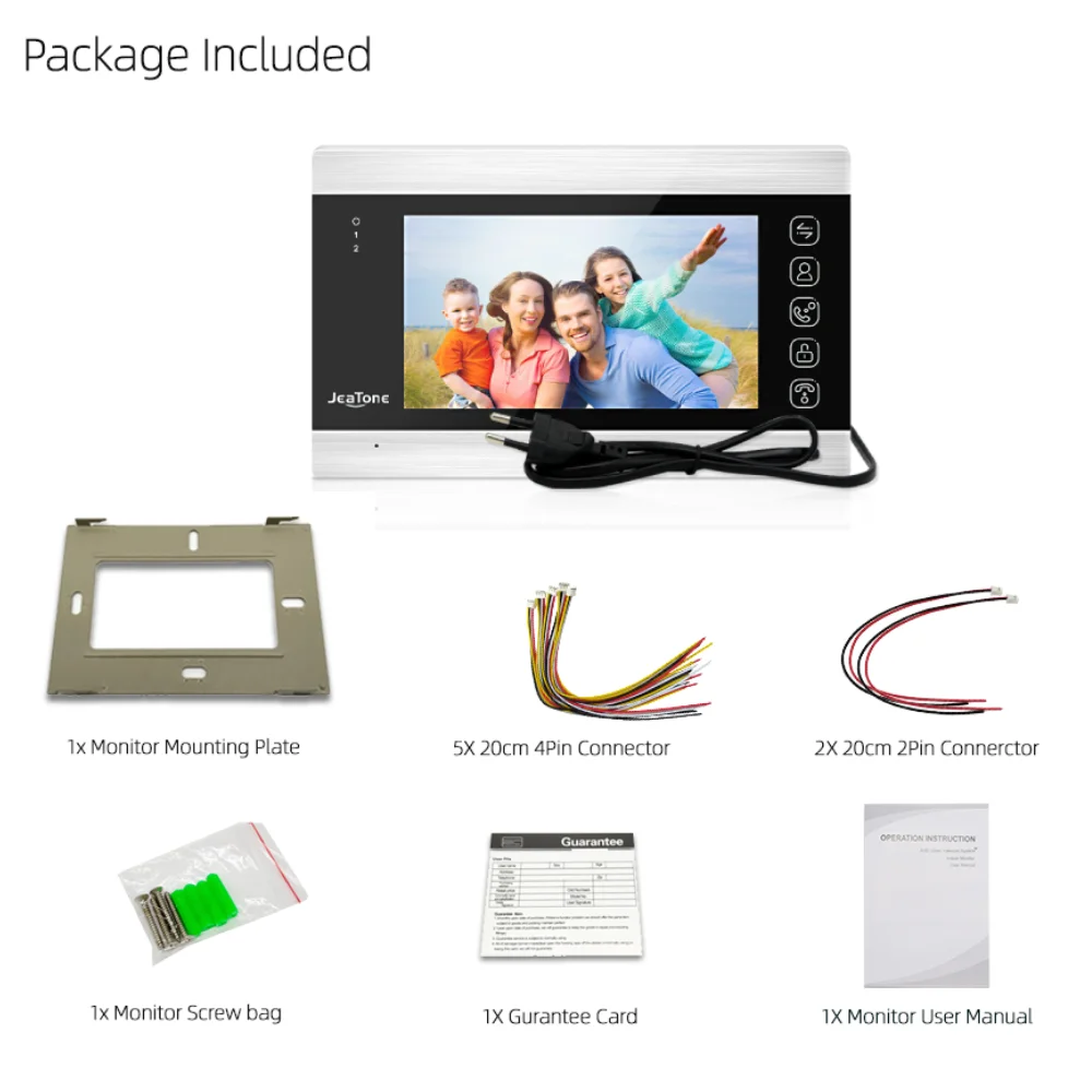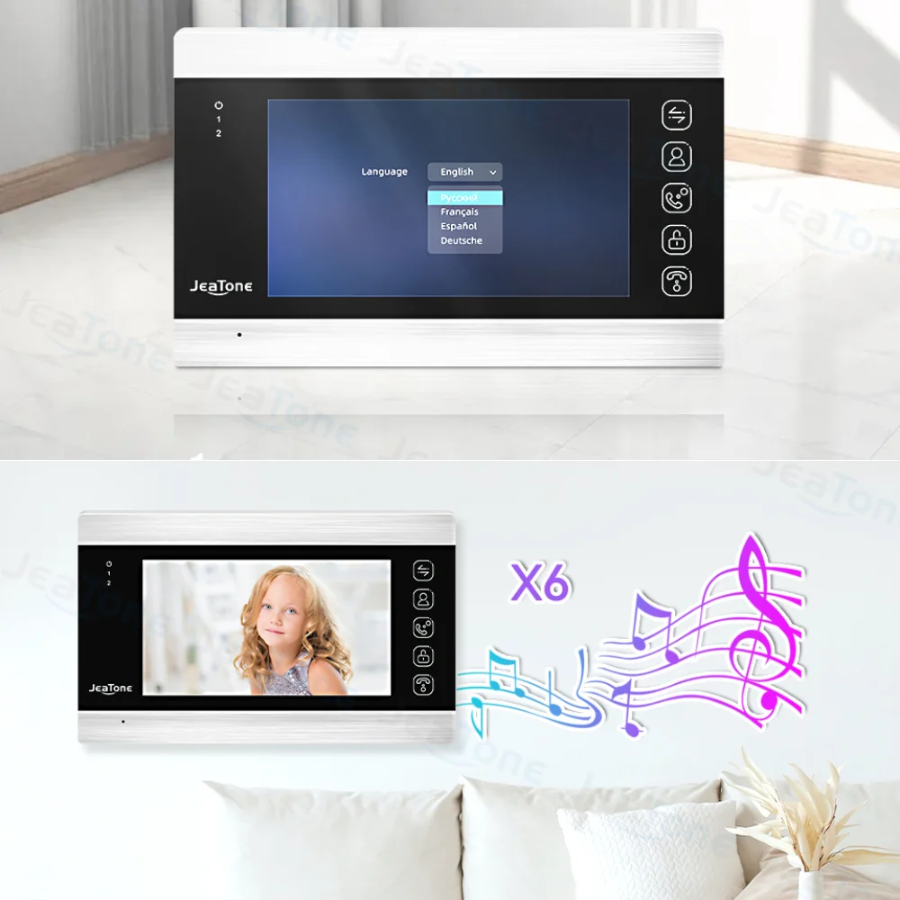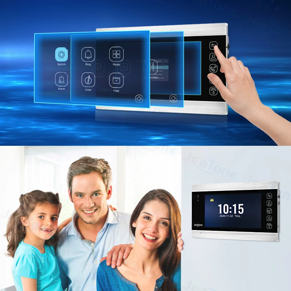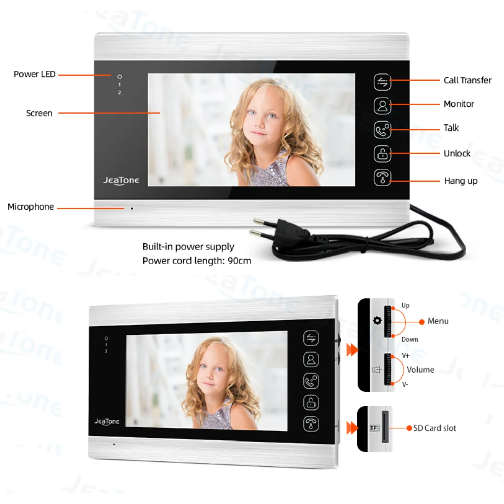 JeaTone 7 дюймов внутренний монитор одиночный видео дверной звонок Домофон Система видео запись Фото съемка серебряное настенное крепление