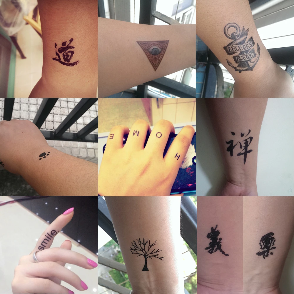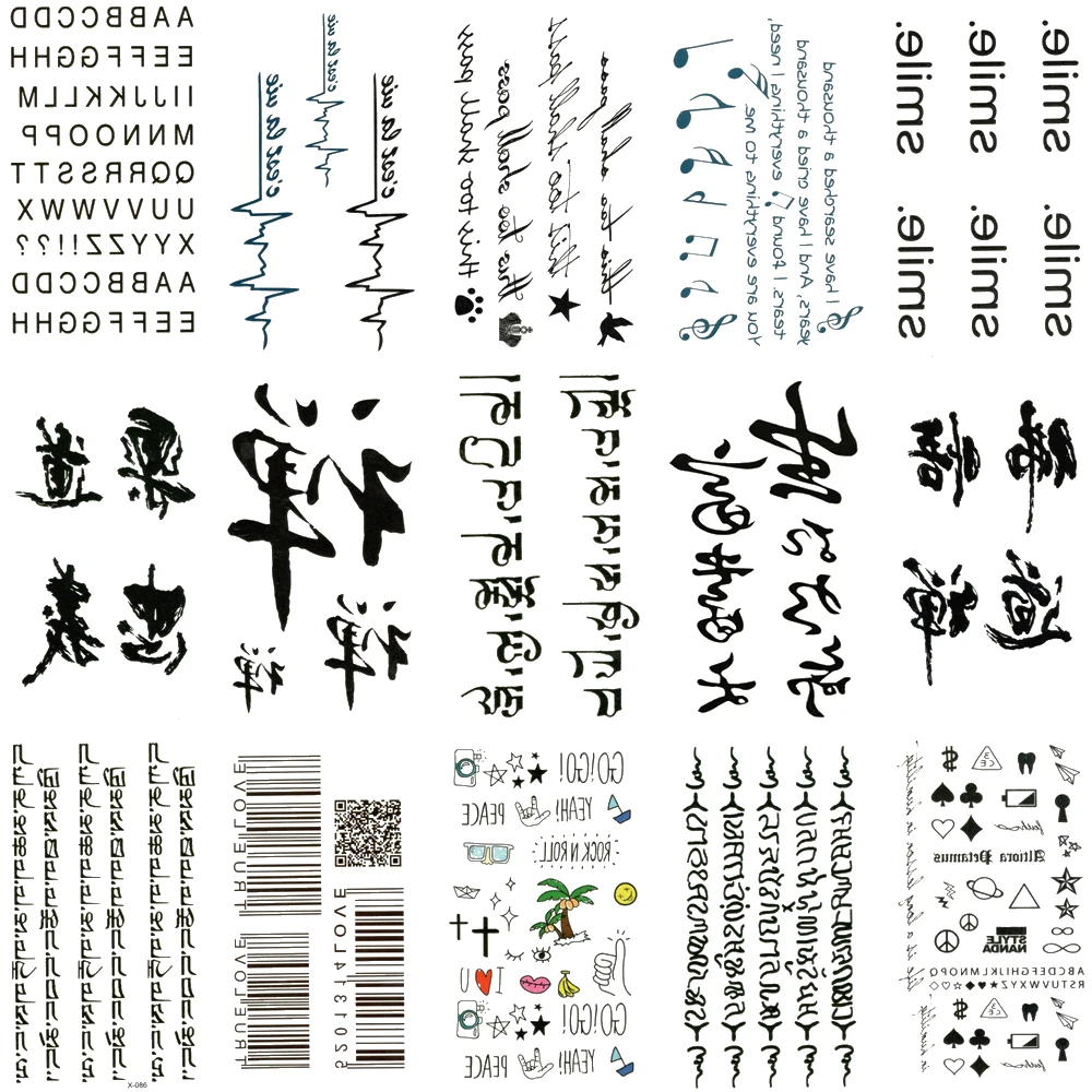 30 шт.лот, водонепроницаемые временные наклейки на искусственные татуировки, водная переводка, черный текст, китайский, буква, санскрит для мужчин и женщин, боди-арт