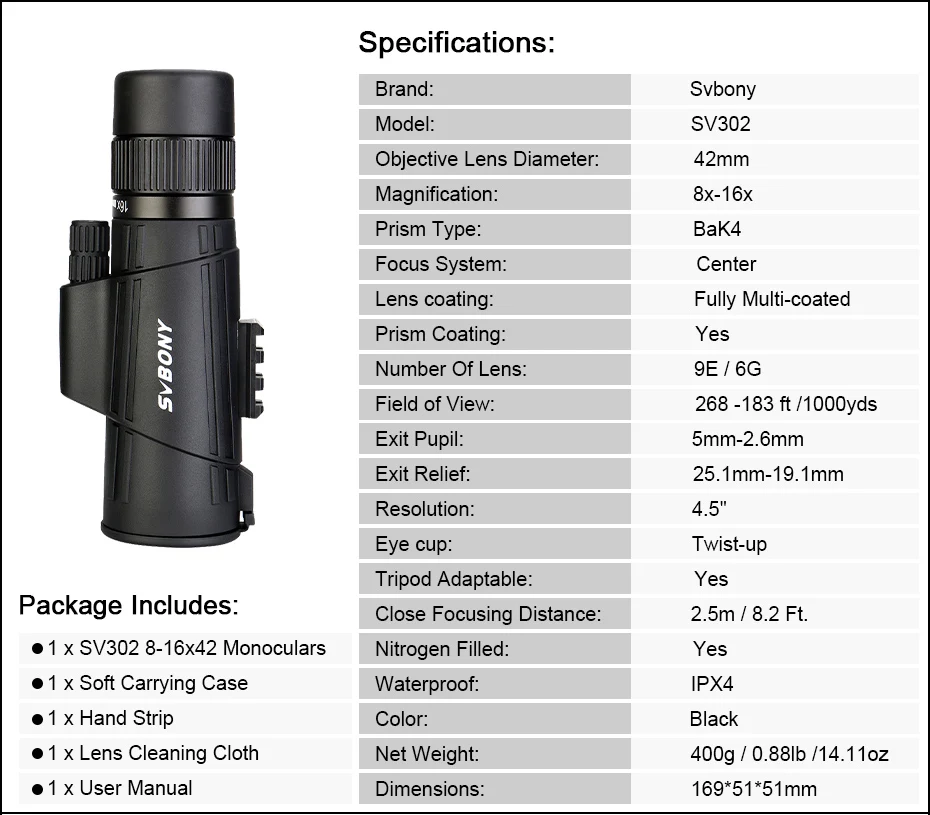 Хороший монокуляр, доставили в МО за несколько дней курьером до дома. Главное не забыть, что окуляр удлиняется, а то неудобно смотреть будет. Товар и продавца рекомендую.