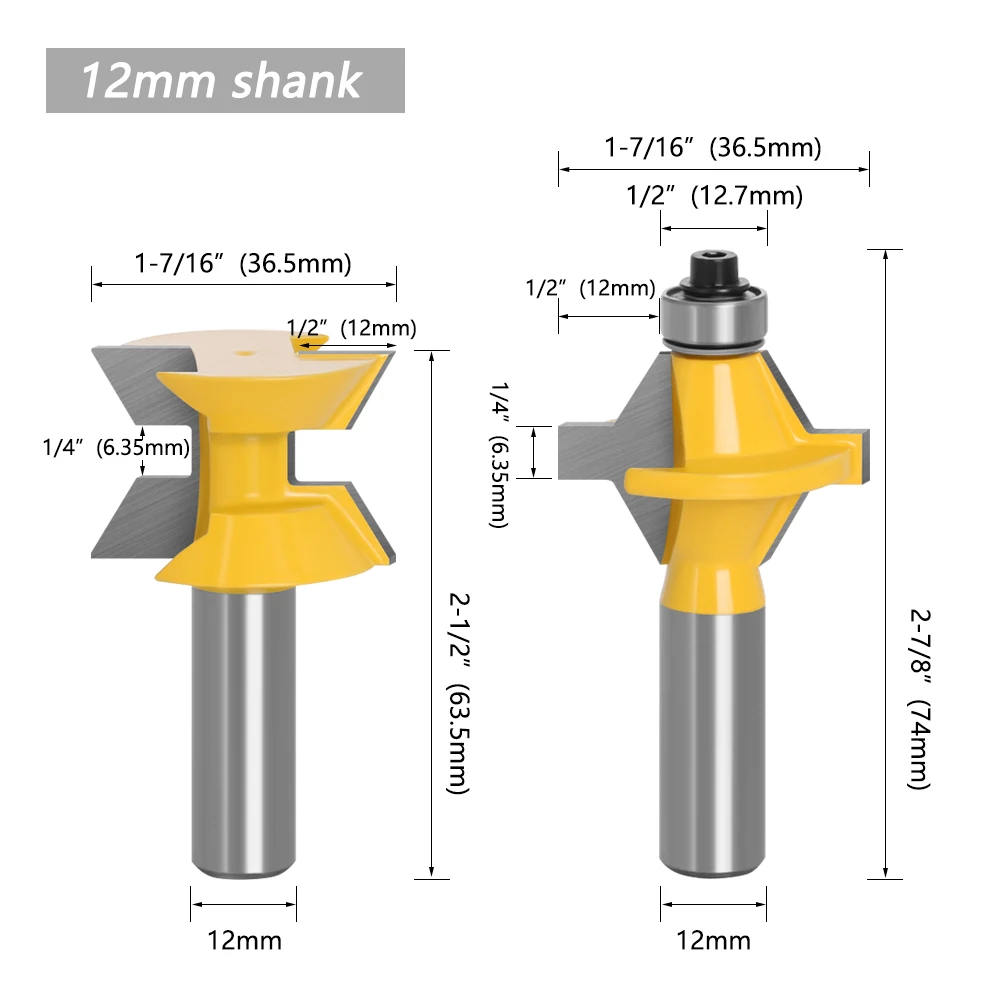 Набор фрез с шипами для деревообработки, комплект из 2 насадок 12 мм, 12 дюйма, хвостовик 120 градусов, для работ по дереву, карбид вольфрама 03029