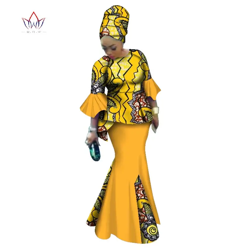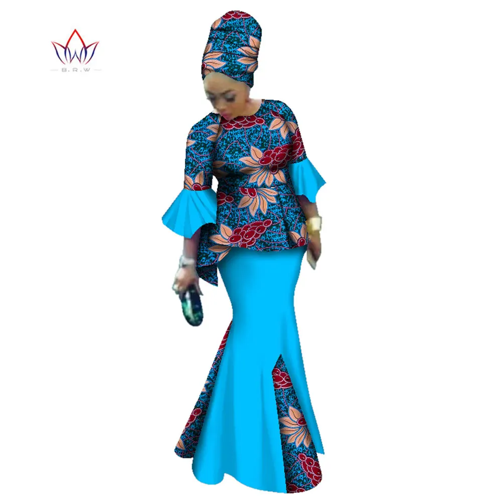 Комплект одежды женский из 2 предметов, короткий топ с рукавами-колоколами и длинная юбка, русалка в африканском стиле, макси Одежда с бесплатным шарфом WY2493