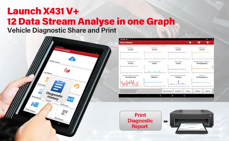 Вы можете сделать дистанционное управление, так как этот инструмент можно использовать через Bluetooth или Wi-Fi. А через Bluetooth диагностический разъем DBScar легко обменивается данными с X431 V +.
