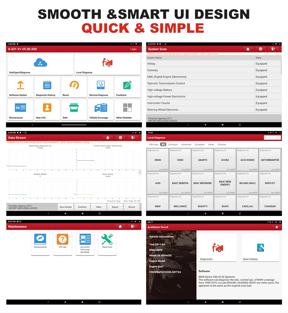 Только X431 V + имеет управляемые функции среди всех онлайн-продуктов LAUNCH.Управляемые функции показывают все конкретные инструкции по эксплуатации шаг за шагом и автоматически запускают инструкции для выполнения сброса, сопоставления, кодирования и т. Д.Вам просто нужно следовать инструкциям и нажать кнопку «Завершить / продолжить», чтобы сделать это.Это хороший помощник, который поможет вам сориентироваться при ремонте автомобиля.