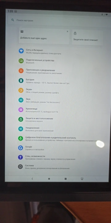 Операционная система: Android 9.0Процессор: Qualcomm Snapdragon 450, 8-ядерный, 1,8 ГГцАккумулятор: литий-полимерный аккумулятор емкостью 7000 мАчПамять: 3 ГБЕмкость хранилища: 32 ГБ (с возможностью расширения до 128 ГБ)ЖК-дисплей: 10,1 дюймаРазрешение ЖК-дисплея: 1920 * 1200 IPSСенсорный экран: емкостный сенсорный экранКамеры: 5,0 мегапикселей спереди и 8,0 мегапикселей сзади.Wi-Fi: 802.11a / b / g / n / ac (2,4 ГГц / 5 ГГц)Bluetooth: ПоддерживаетсяРабочая температура: 0 ~ ℃ 45 ℃Температура хранения: -20 ~ ℃ 70 ℃