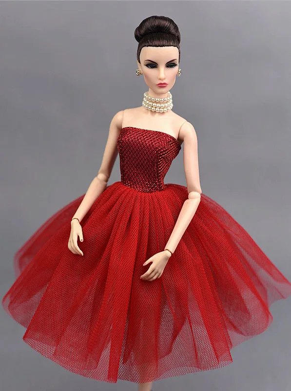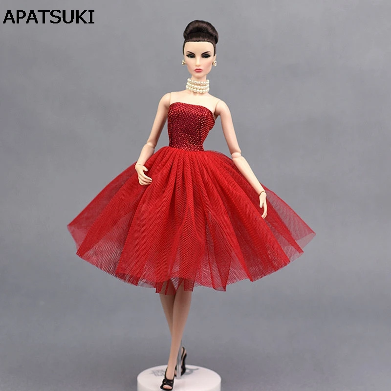 Короткое красное балетное платье для куклы Барби, цельнокроеное вечернее платье, Одежда для кукол Барби, аксессуары для кукол 16 BJD