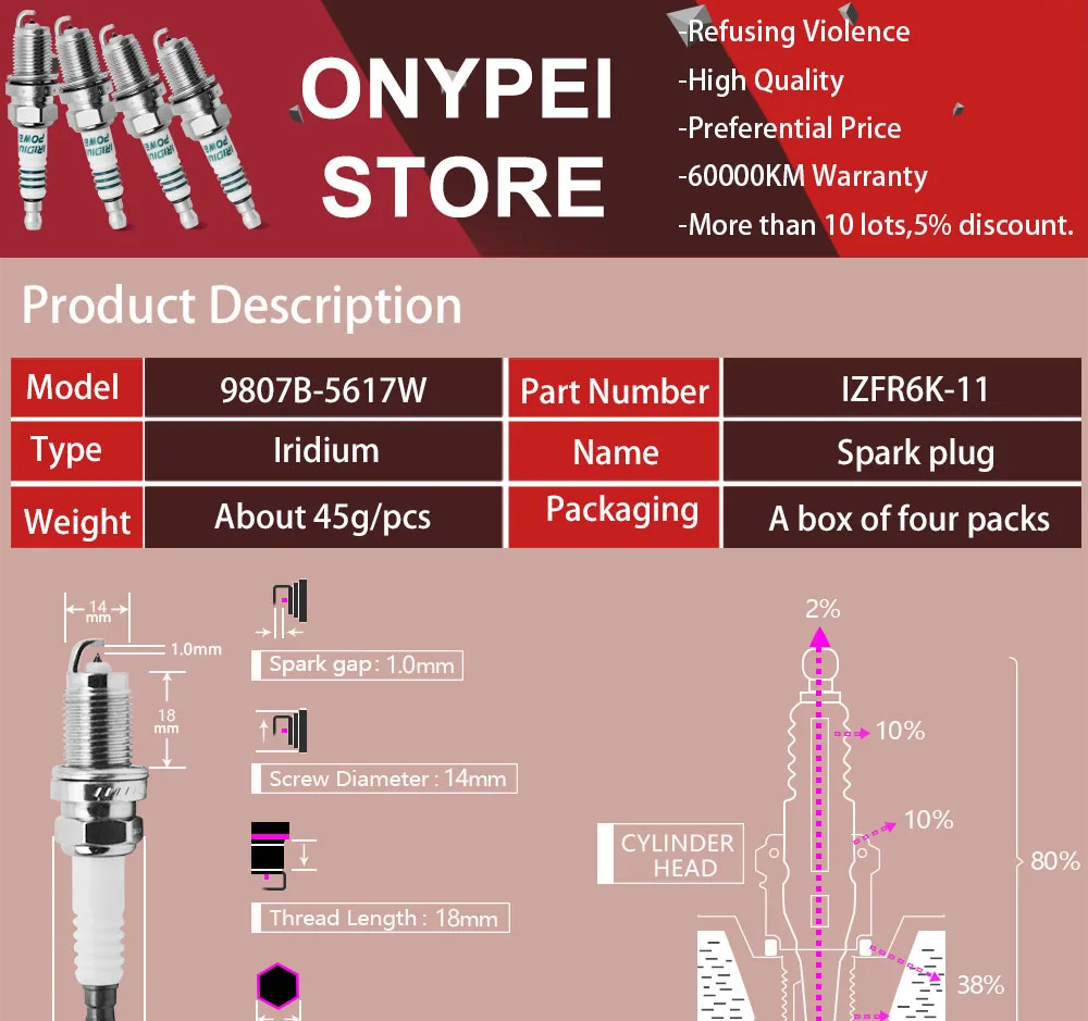 4 шт./лот иридиевая Свеча зажигания 9807B-5617W IZFR6K11 6994 для Honda 9807B5617W IZFR6K11-6994
