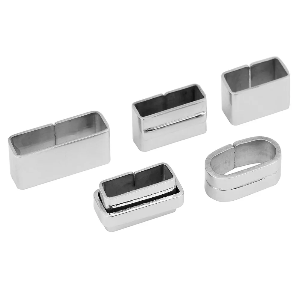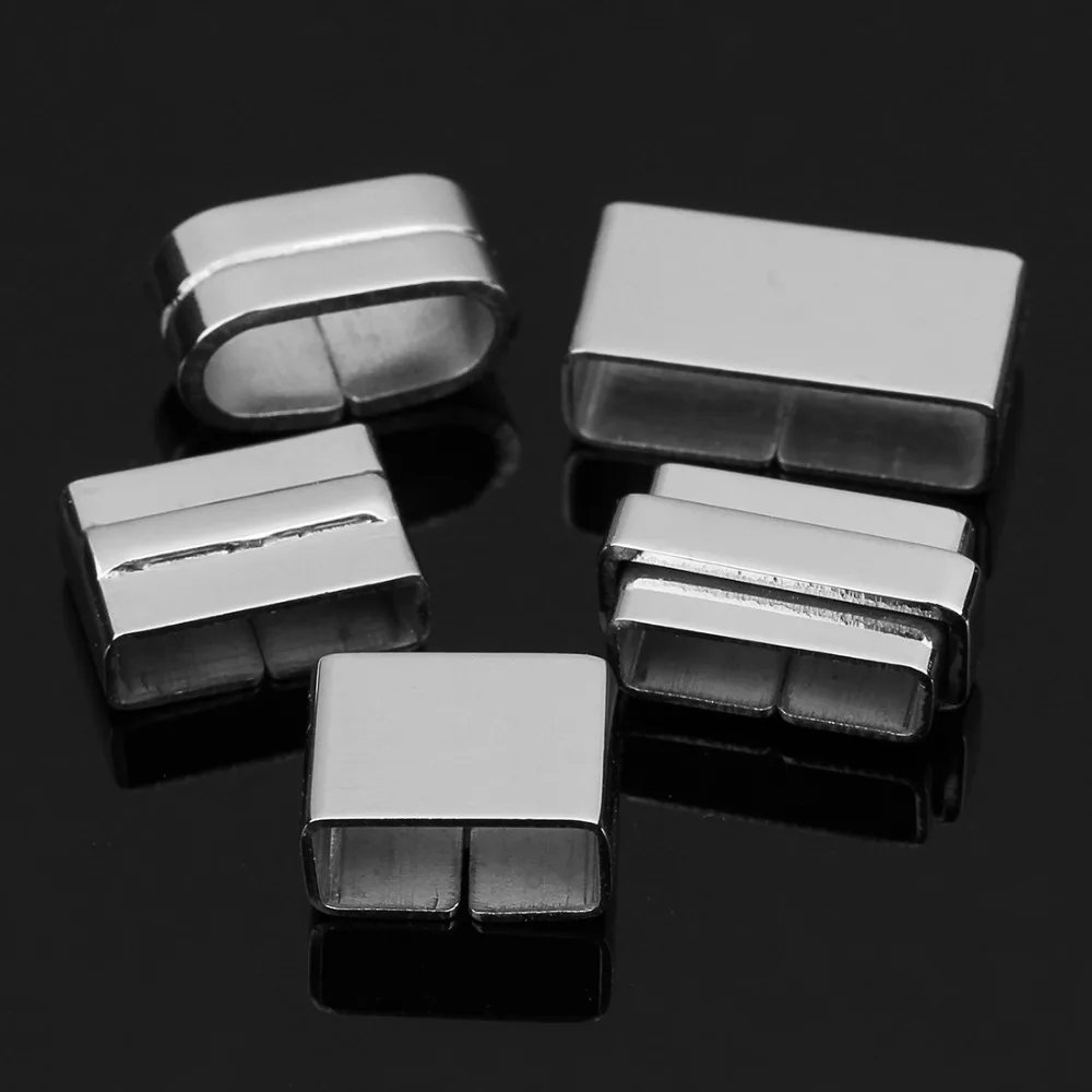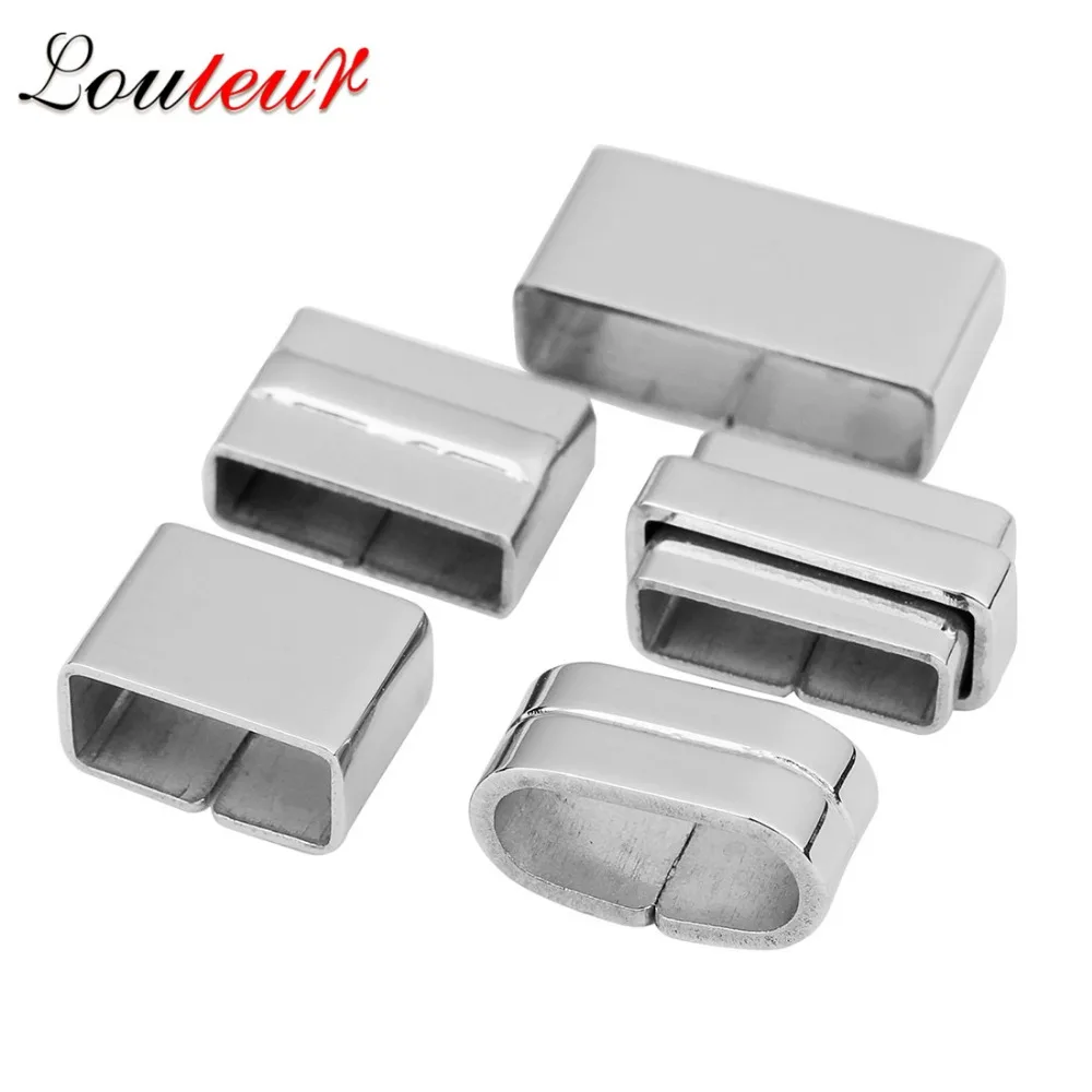 LOULEUR 5 шт./лот квадратная форма из нержавеющей стали с большим отверстием, бусины, подходят для плоских кожаных шнуров, браслеты для изготовления ювелирных изделий
