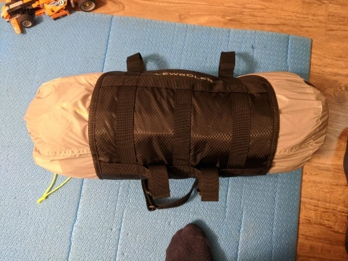 Пришло быстро. Мешок прочный и с запасом вмещает палатку Cloudup2 (включая мат) + спальный коврик. Крепление тоже кажется надёжным, начнется сезон проверим.