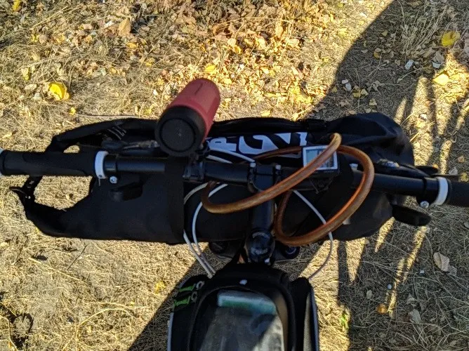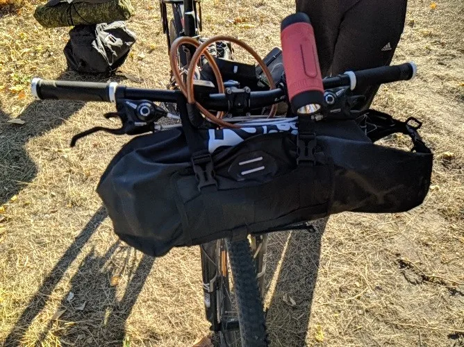 Хорошая базовая сумка на руль. Он достаточно большой, чтобы держать мой шатер и столбы. Весит очень мало. Кажется достаточно безопасным, хотя я, вероятно, добавлю лыжный ремешок или два, чтобы предотвратить любое движение. Очень хорошо за цену. Если вы хотите некоторое разделение от кабелей, вам нужно будет создать креативную прокладку и, скорее всего, использовать различные ремни.