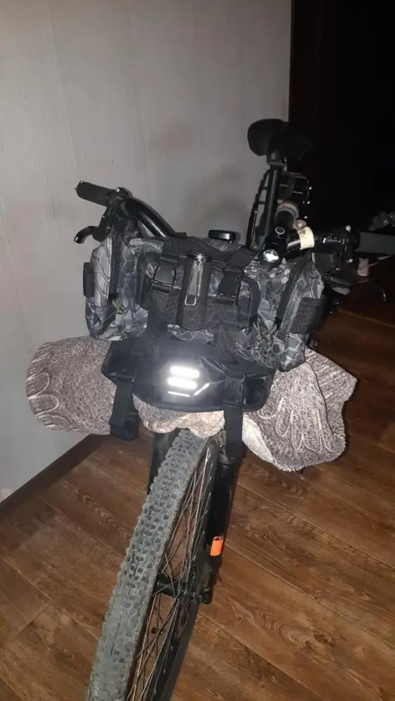 10/10 сумка огромная, можно вместить на выбор палатка/спальник и дополнительно вещи и воду и ещё остаётся место. Водонепронецаемая. Вес в 5 кг выдержало без напряжения. Из недостатков: при амортизации давит на переднее крыло, из-за чего крыло трётся о колесо и может поломаться. Поэтому ездил без переднего крыла.