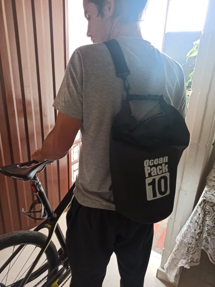 В 15л гермку затолкал теплый спальник, собственно для него и покупал. На руль не вешал еще, дополню отзыв с фотографиями. При распаковке токсический запах, будьте аккуратны)) В целом хорошая сумка для велотуризма или рыбалки.