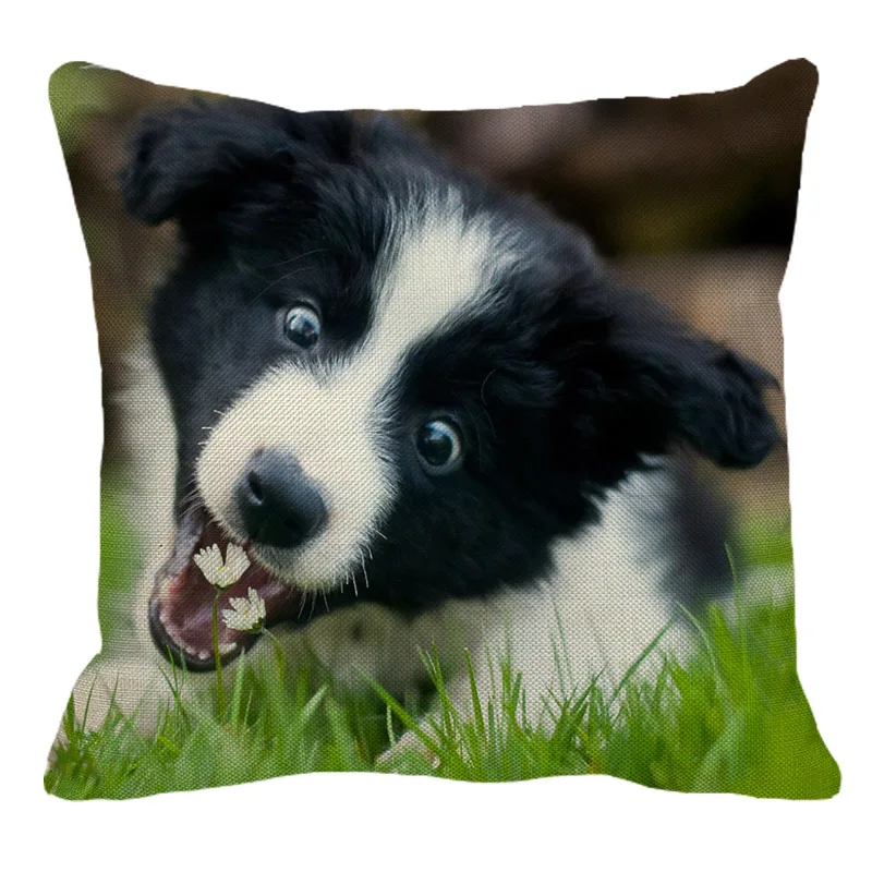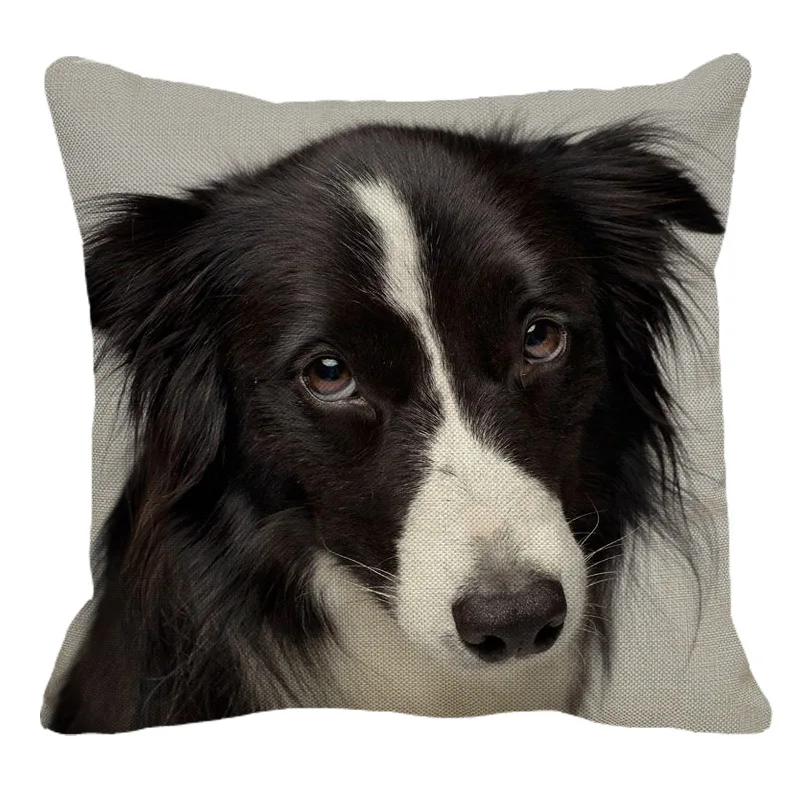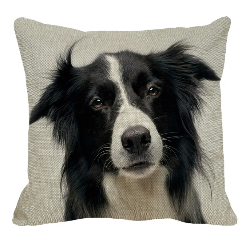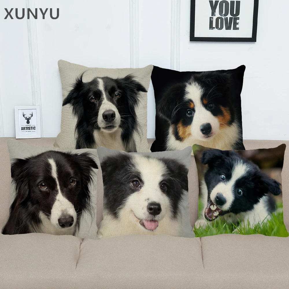 XUNYU милый льняной чехол с каймой колли, декоративная наволочка с животным рисунком, квадратный домашний диван, наволочка 45x45 см BZ196