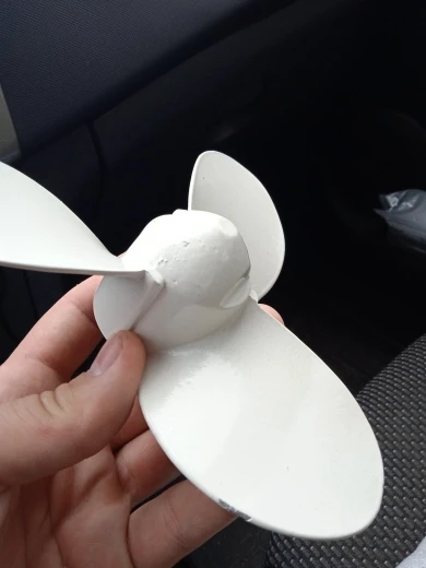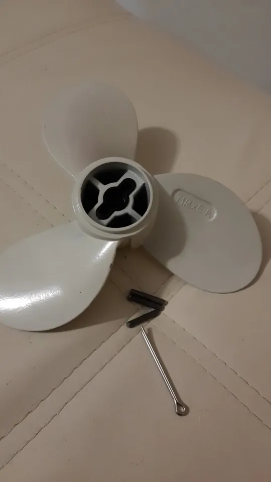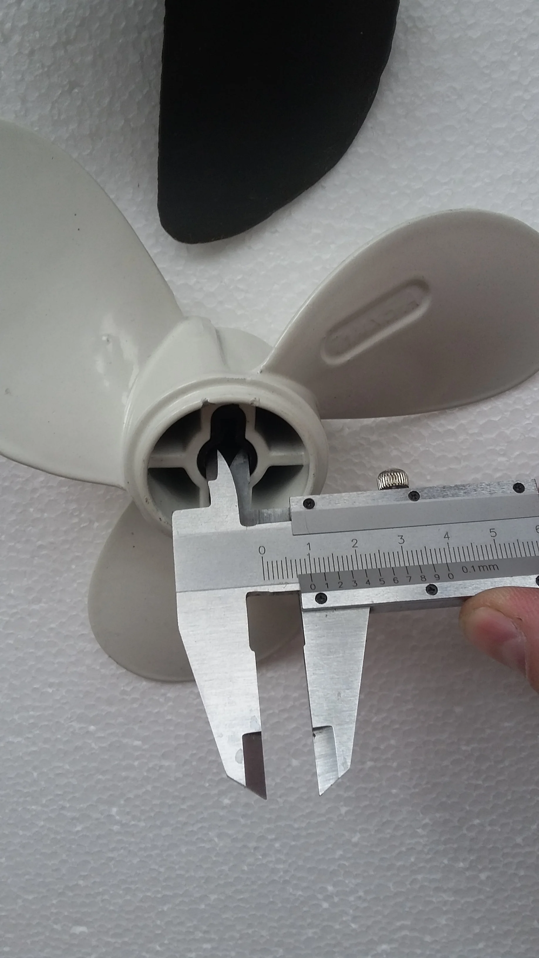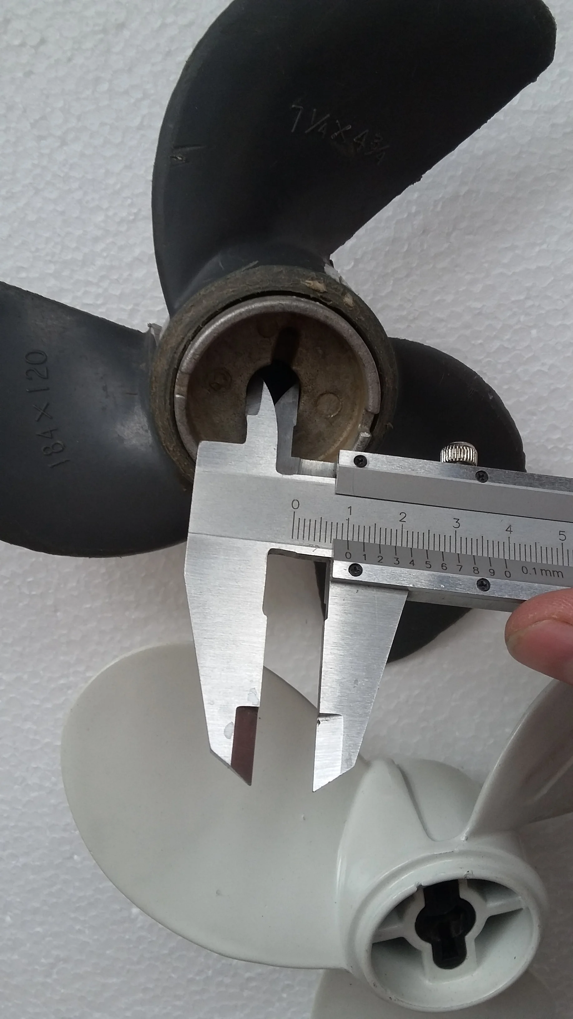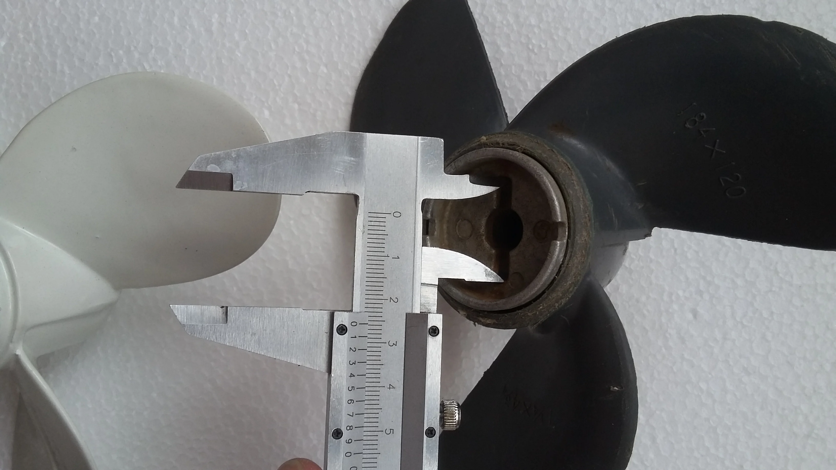 Доброго времени суток! Винт покупался на Хонда 2,3. По доставке все отлично, приехал быстро, около 2-х недель. Винт железяка 7_1/4 х 5 (родной Хондовский 7_1/4 х 4 3/4). Внутри черная пластиковая втулка. Посадочный диаметр 10мм как на родном винте (см. фото), сидит четко. А вот штифты не подходят, ибо родной диаметр 2мм, а в комплекте поставки 2,3мм. К тому же на этот винт штифты нужны короче родных - 26мм родной и 22мм в этот (см. фото).