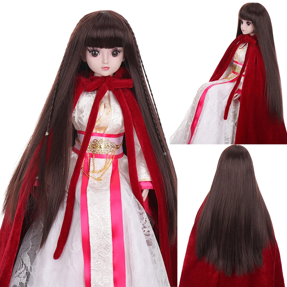 Волосы Bybrana для шарнирной куклы, 13, 14, длинные, черные, прямые, из термостойкого волокна, парики для кукол