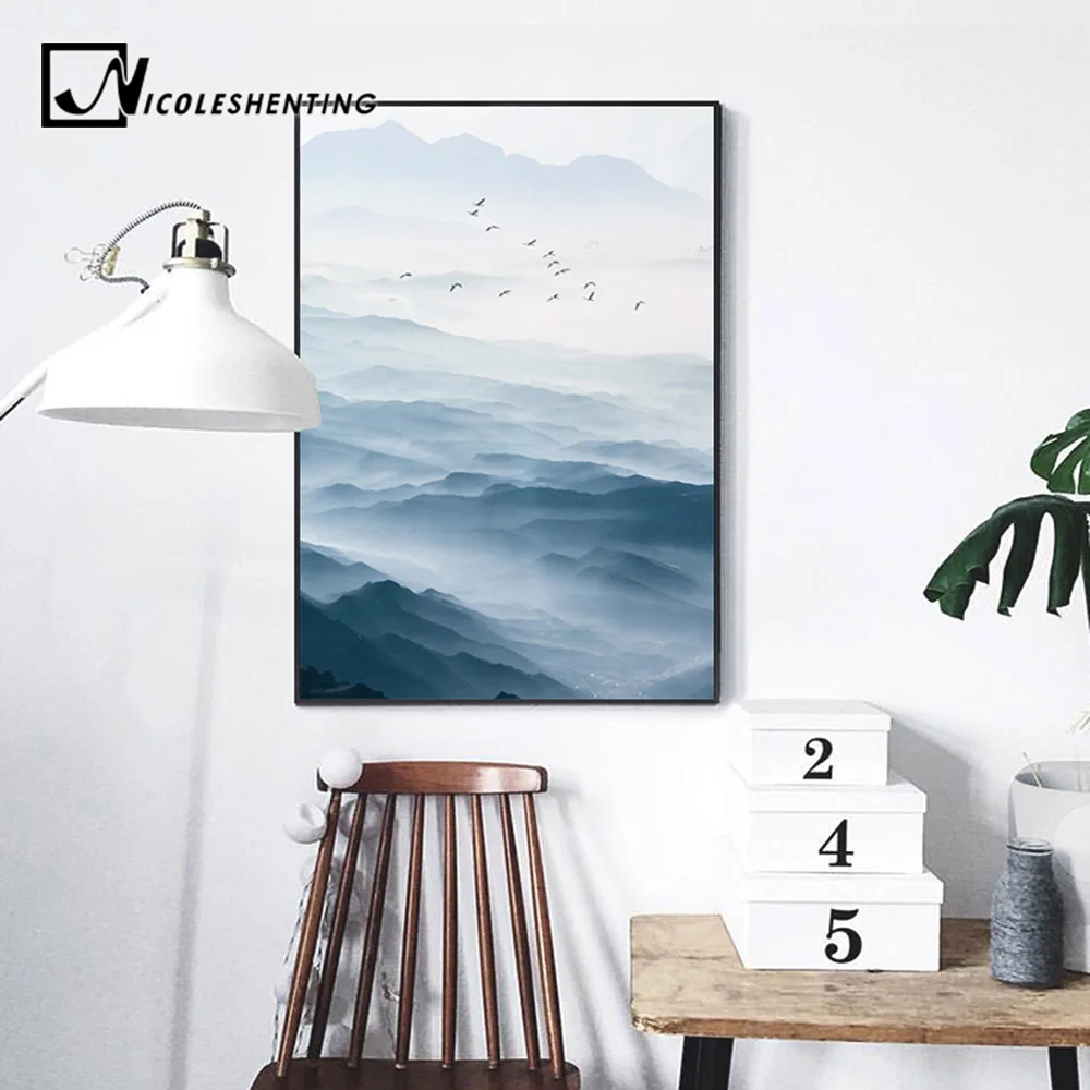 Туманный Горный пейзаж настенные художественные Холст Плакаты скандинавский стиль принты картины настенные картины для гостиной домашний декор