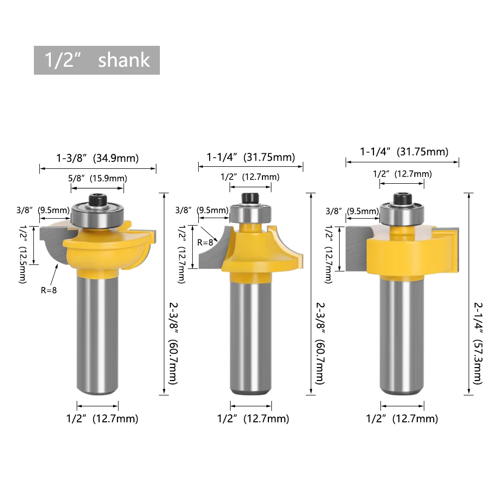 Набор фрез для бисероплетения, комплект из 3 насадок 12 мм 12 дюйма, Т-образная форма, для работ по дереву, электроинструменты 03028