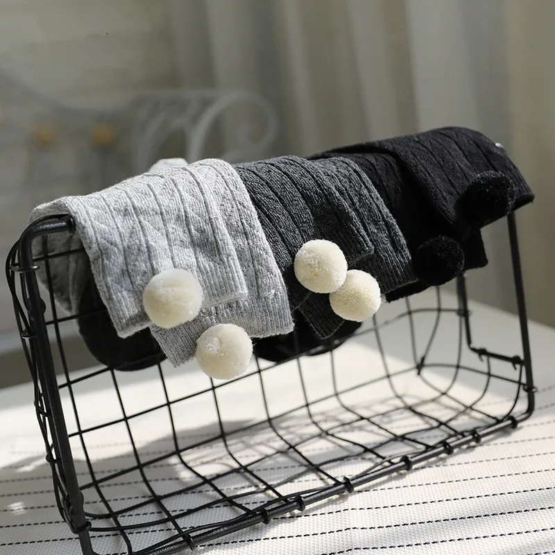 Женские хлопковые смешные носки с помпоном для мальчиков и девочек, модные осенние детские длинные носки до колена, Брендовые женские