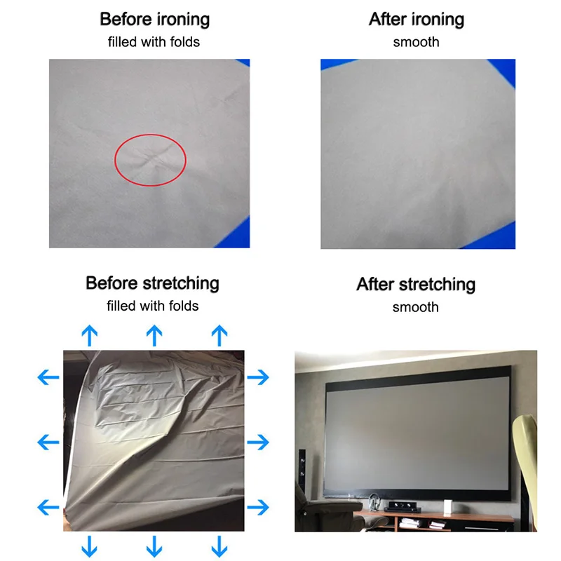 Быстрая доставка. Экран настоятельно рекомендуется для ярких проекторов с низкой яркостью. Лично я рекомендую использовать его как растянутый экран с фиксированной рамкой. Можно использовать только с длинным проектором.