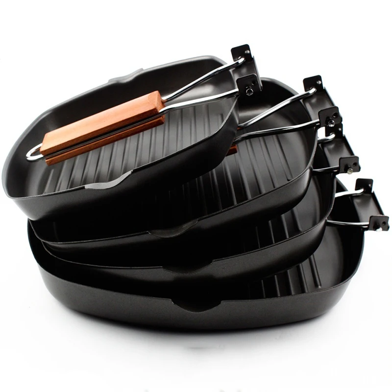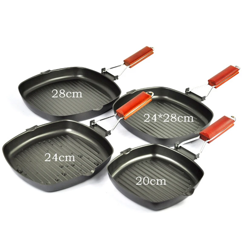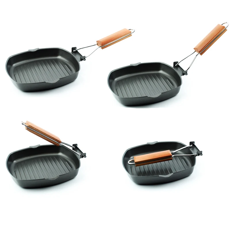 Нелипкий чугунный сковорода для стейка деревянная ручка складной портативный квадратная сковорода гриль