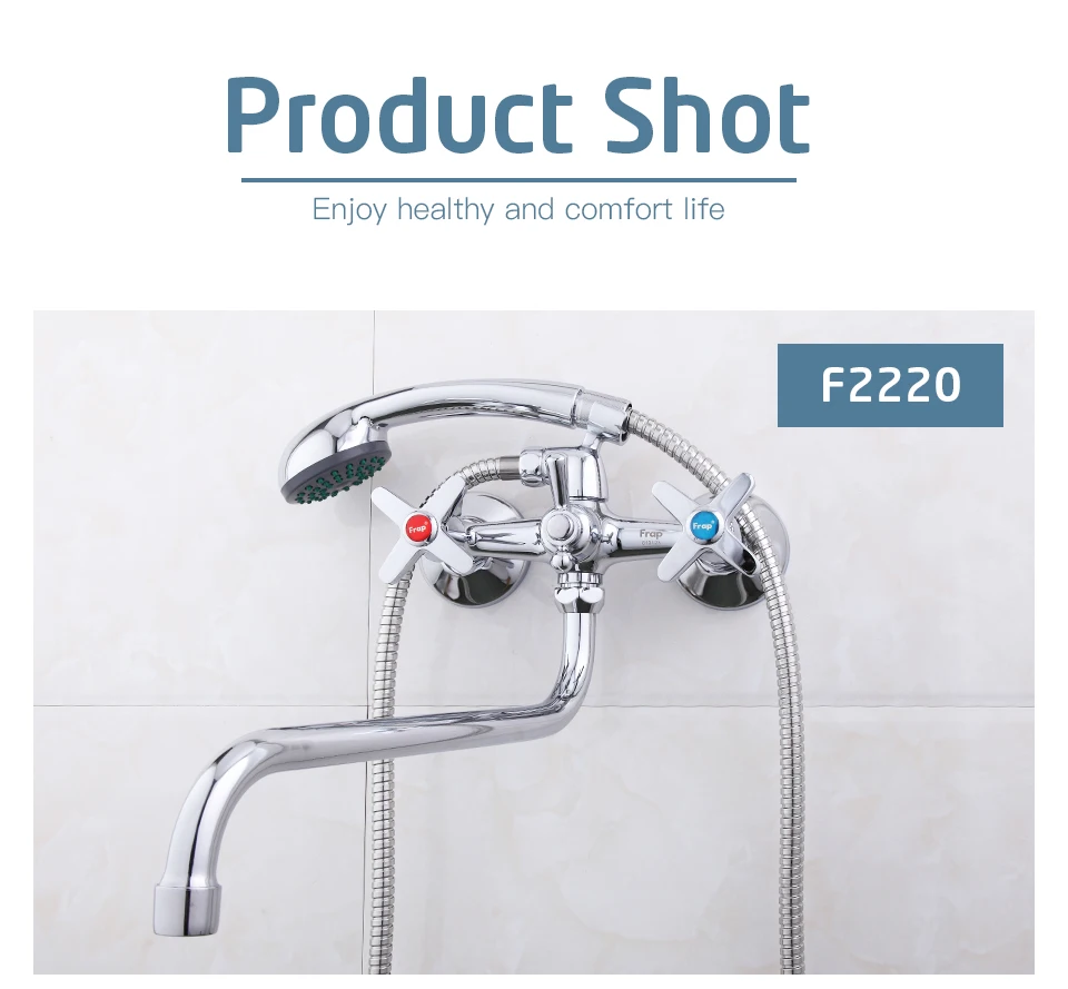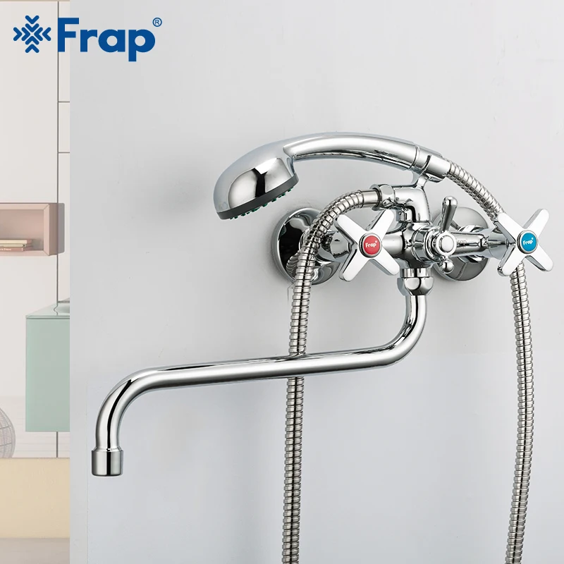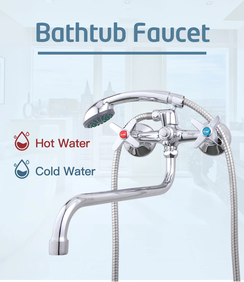 Смеситель для ванны и душа Frap, 1 комплект, 30 см, серебристый, хромированный, из цинкового сплава, насадка для душа, смеситель для ванны F22701-B