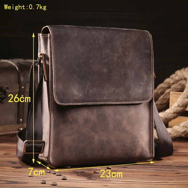 Винтажная мужская сумка через плечо из натуральной кожи, маленький вертикальный мессенджер для Ipad А4 в стиле ретро, 8069