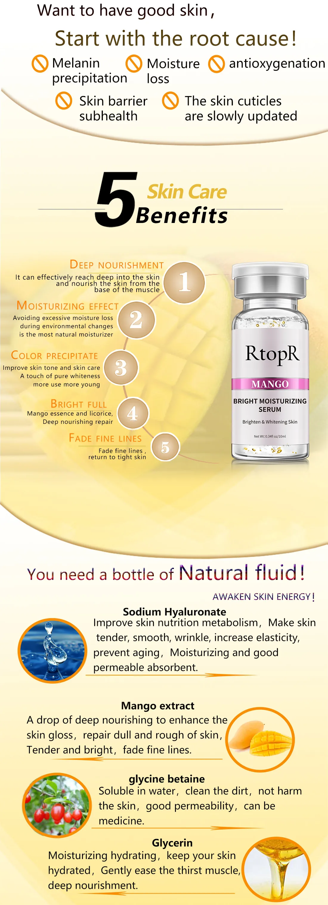 Экстракт манго эссенция питательная интеграция экстракта глициррхизы глабра, немного глубоко питает, улучшает блеск кожи, улучшает кожу тусклой грубой, нежной яркой, опреснения тонких линий, а также гиалуроновой кислоты, глубокое увлажнение, кожа, полная эластичности, естественная, яркая и гладкая.