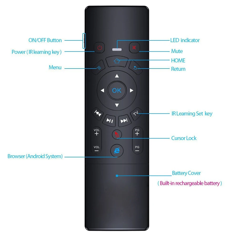 [Мини-клавиатура и Гироскопическая воздушная мышь]-Комбинированный контроллер с мультимедийными клавишами быстрого доступа, 63 клавиши с поворотом на 360 градусов, с литиевой батареей.