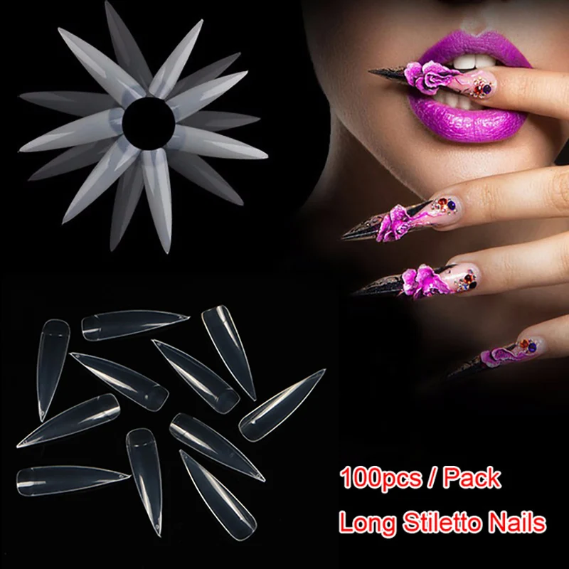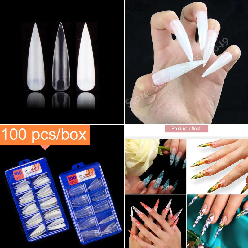 100 шт. в коробке, Длинные накладные ногти на шпильке, Типсы для ногтевого дизайна, акриловые, салонные, белые, натуральные, прозрачные, половина типсов, опция, сделай сам, дисплей