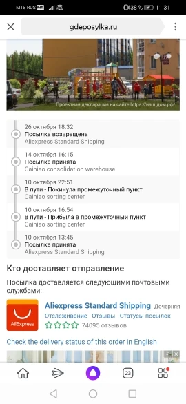 Товар вернули продавцу при пересылке. Деньги вернули через спор.