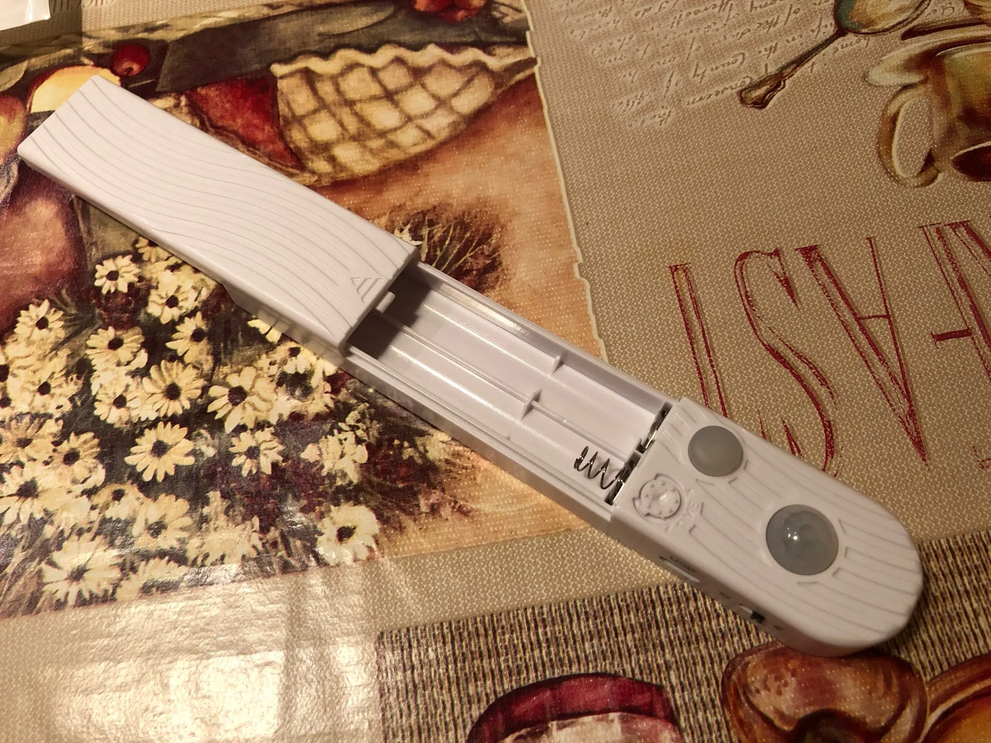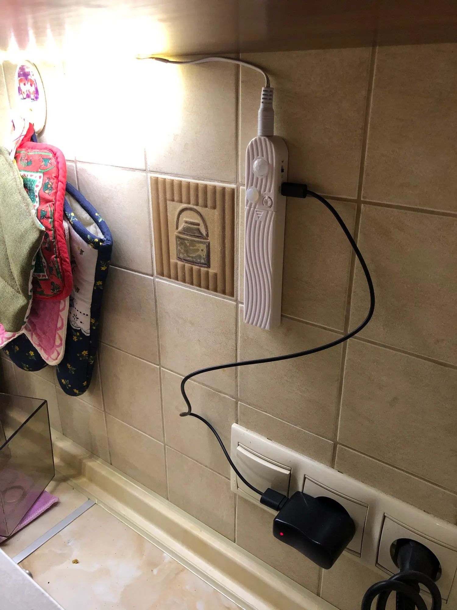 Пока ещё не крепила к кухне,не понятно, какие нужны батарейки для неё,но проверила через USB, все работает.