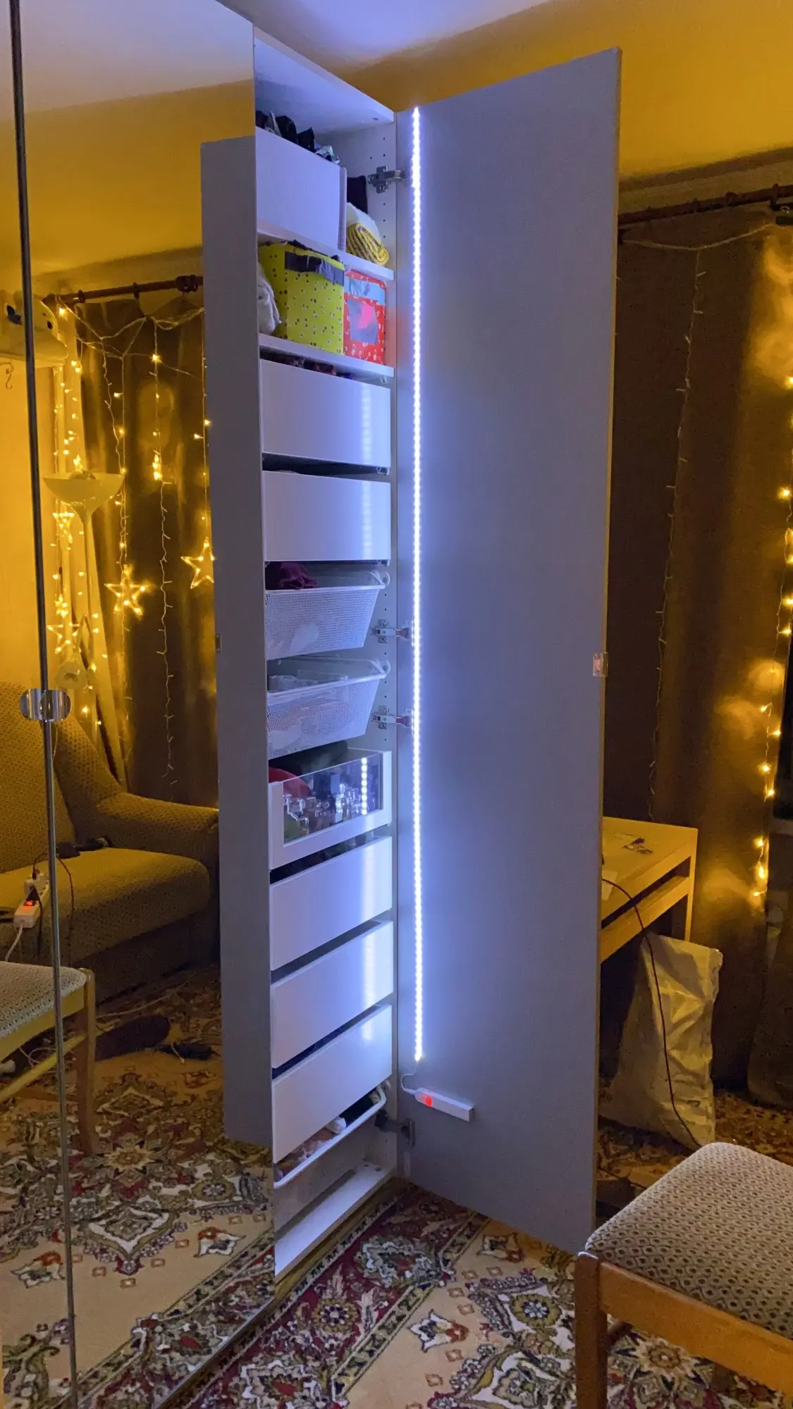 Супер , супер !!! Купила себе в шкаф , сынуля играет с ней и не отдаёт - сказал ему в его летний домик на даче такая нужна . Придётся ещё покупать . ( причём заказала сыну проектор звездное небо - так он так не впечатлил ребёнка как кусок ленты ;) .